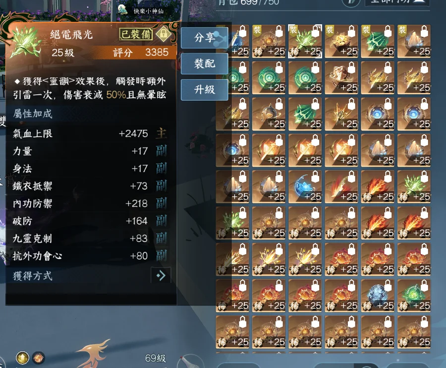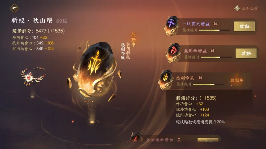 已用天賞為 火武 御劍輕功 殘心三絕劍 天狼星 大小狐狸 自染白陸離
