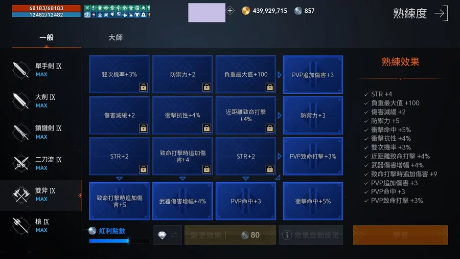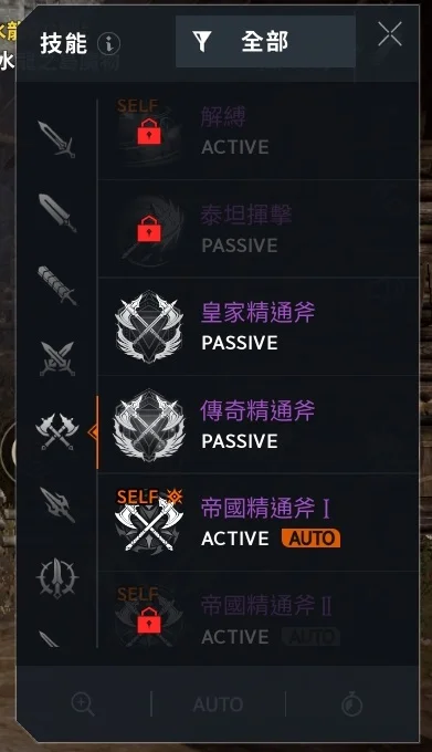 雙斧-金技:權威、尊貴,紫技:1~3階滿+4-1,帝國1,紅技缺一
