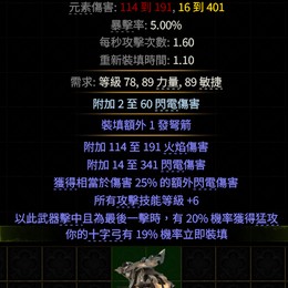 【十字弓、T1閃電點 6詞武器】T1 高閃電 火點 猛攻 +6 十字弩 無廢詞 額外弩箭 雙子十字弓