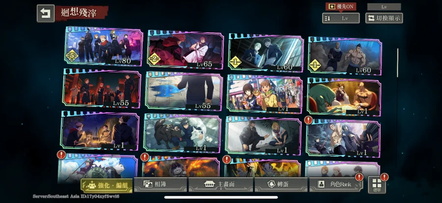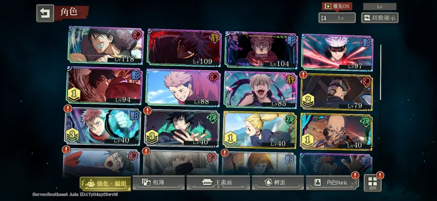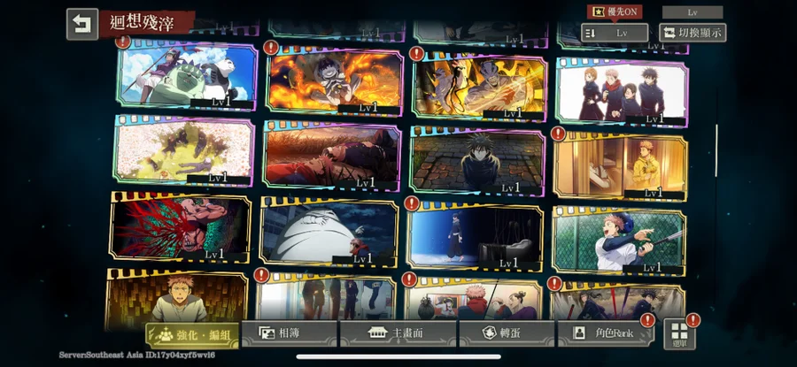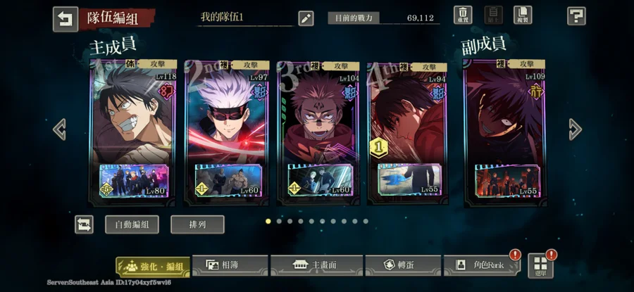 虎杖悠仁(幻)、五條悟(影)、釘崎野薔葳(行)、狗卷(行)