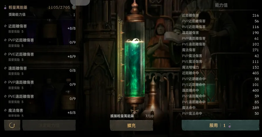 【萬能藥水】: 萬能藥30滿,輕量1111/2705 (擴7/10)