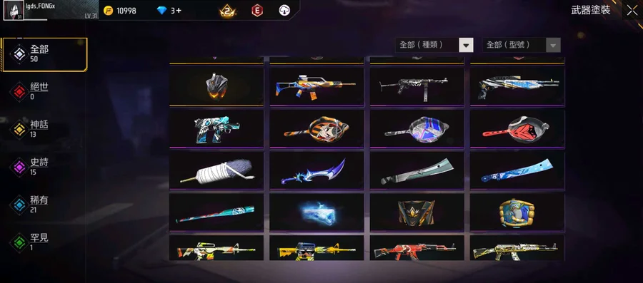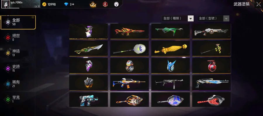【31等】主推MP40綠色寶石,球衣,冰拳,金卷70抽,上個賽季段位傳奇,單信箱整組給