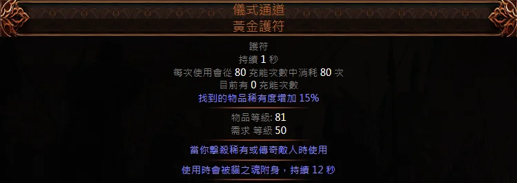 🌀本賣場商品為【儀式通道 黃金護符 - 貓之魂】目前單價【555T】