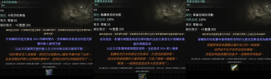 【輔助寶石】族裔→卡莉莎的漸強(詛咒平靜)骷髏馬克的支配(奉獻)萊基亞塔的流動(元素抗性顛倒
