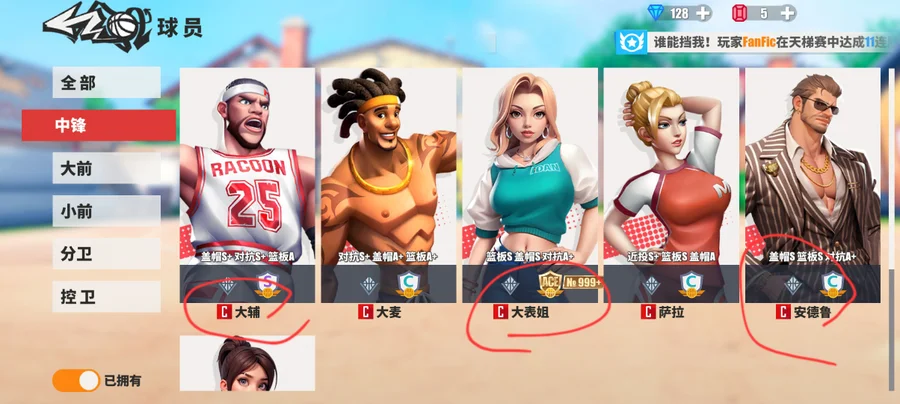 想主攻(火鍋籃板對抗)以上已有重要腳色(4隻)