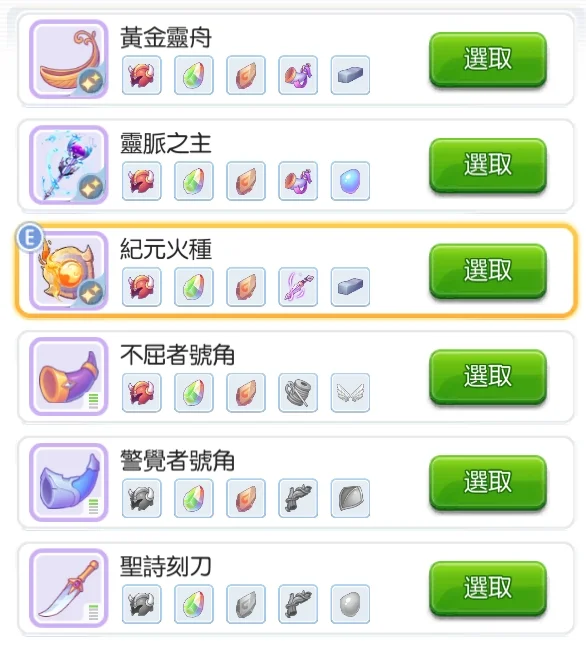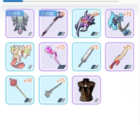 萃取 >15易燃、14邪念、15龍爪、15剜心、15大巫、14紅杖、15修矛、15柱槍、15人抗甲、軟甲、隕石
