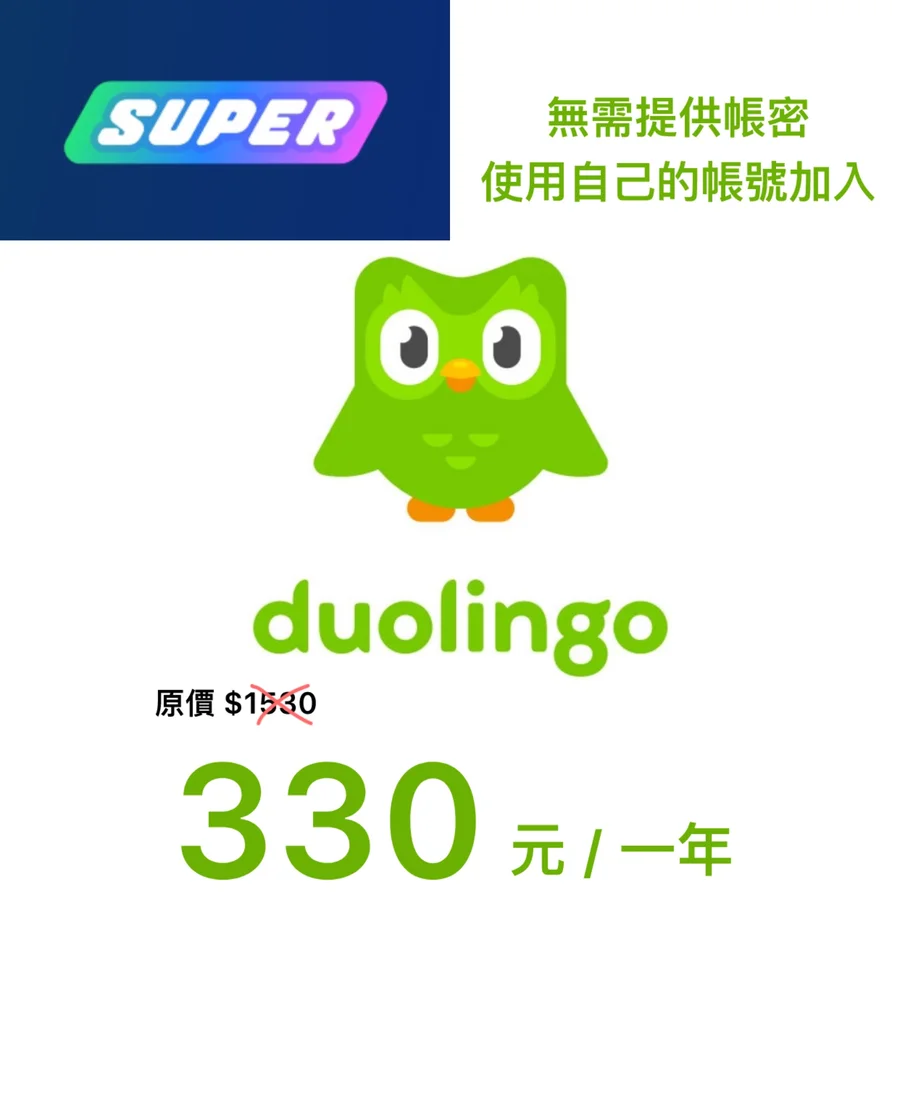 Super duolingo 多鄰國會員 使用自己帳號加入 免提供帳密