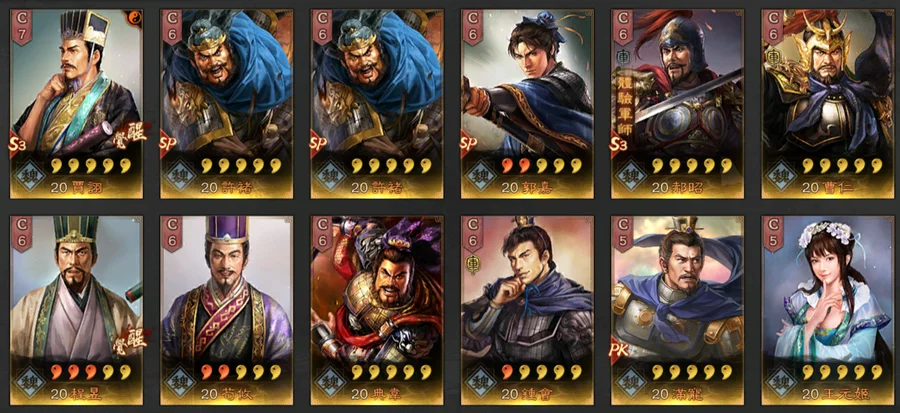 無雙/天公/號令/昭烈/武聖*2/妖氣*6