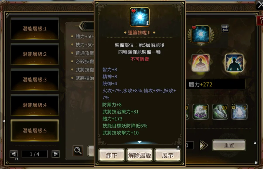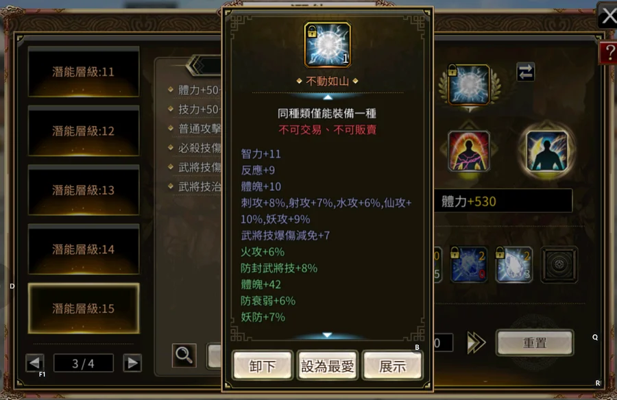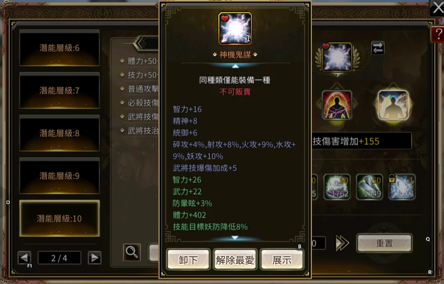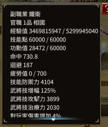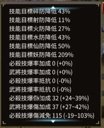 必殺技抵禦7 武將技抵禦5 體、技恢復20 活筋20