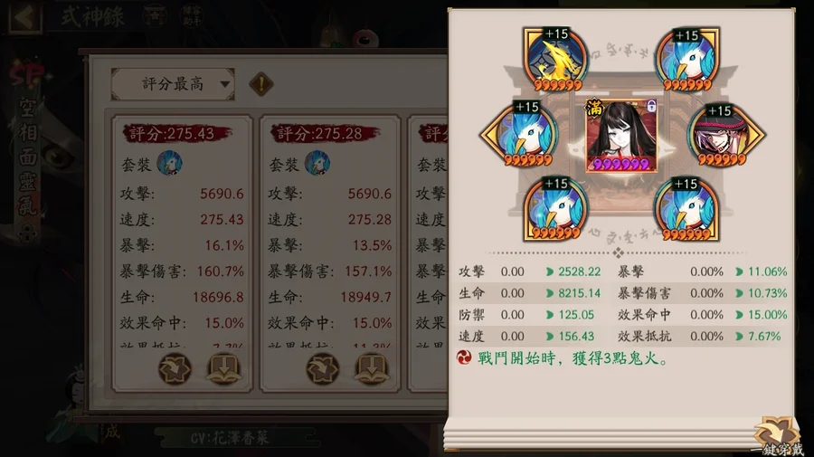 返魂香 16.55、傷魂鳥 16.52 夜荒 15.88