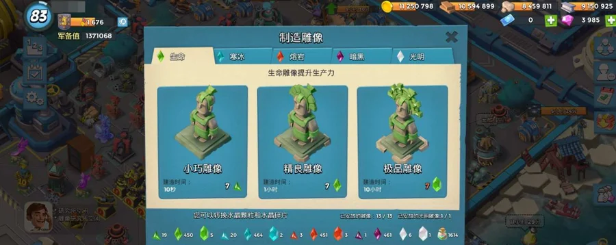 能量、攻擊、生命雕像:1、8、3(屬性值)