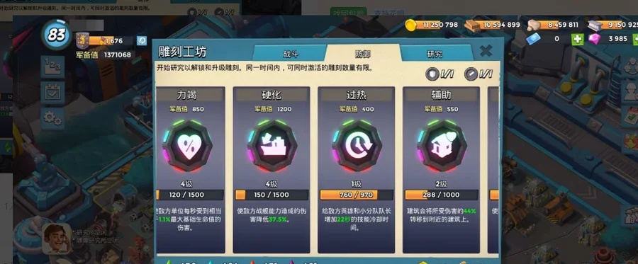 【HGDCV6502】等級:84|84 級,皮膚數量多,科技、建築均已滿級,雕刻的堅固屬性足夠使用;擁有 9000 多水晶(可合成 4500 多藥)、22 個升級幣、233 個雕刻幣,支持可小刀、可二次(實名認證)。 詳情看圖【QQ】【自主截圖】