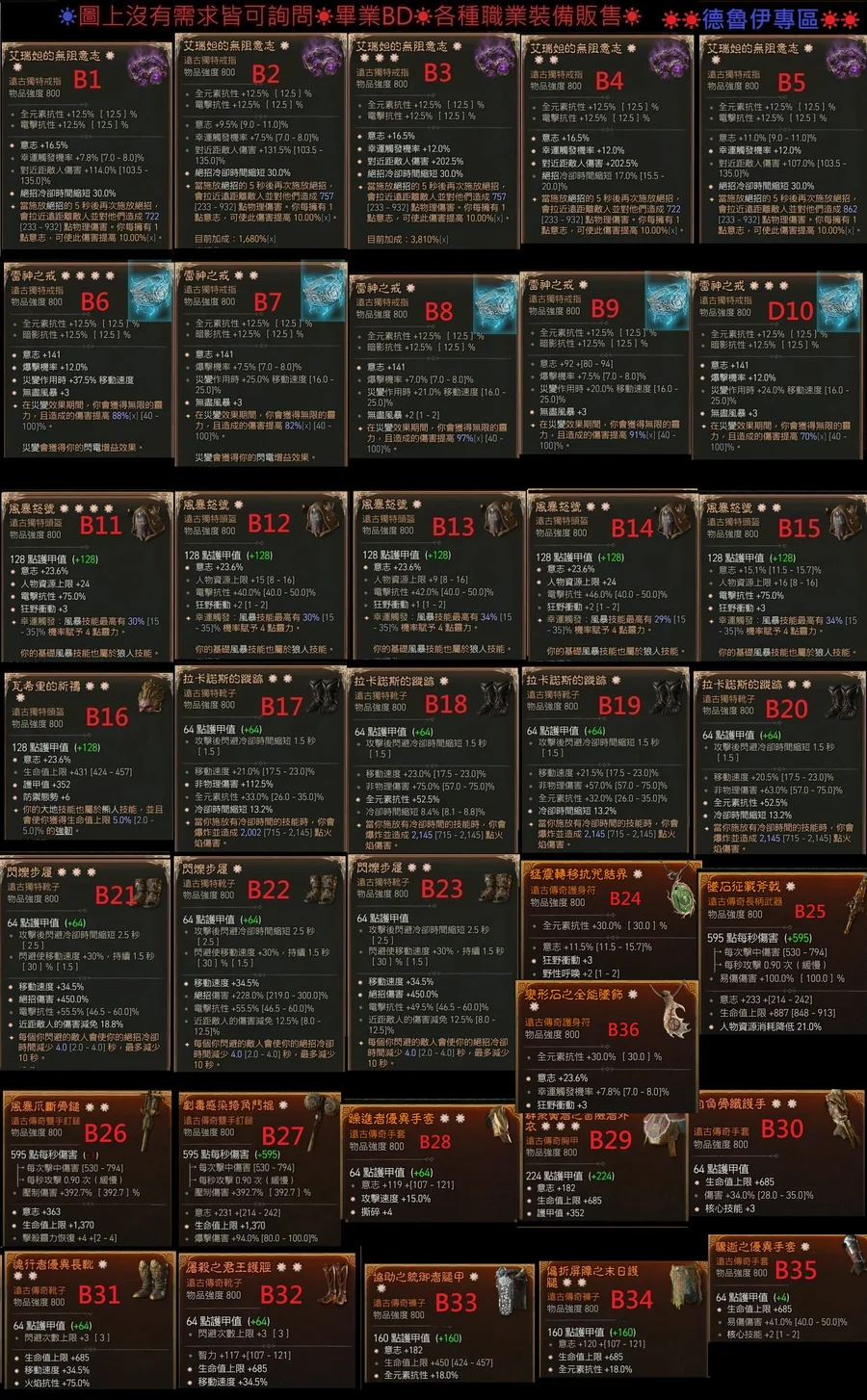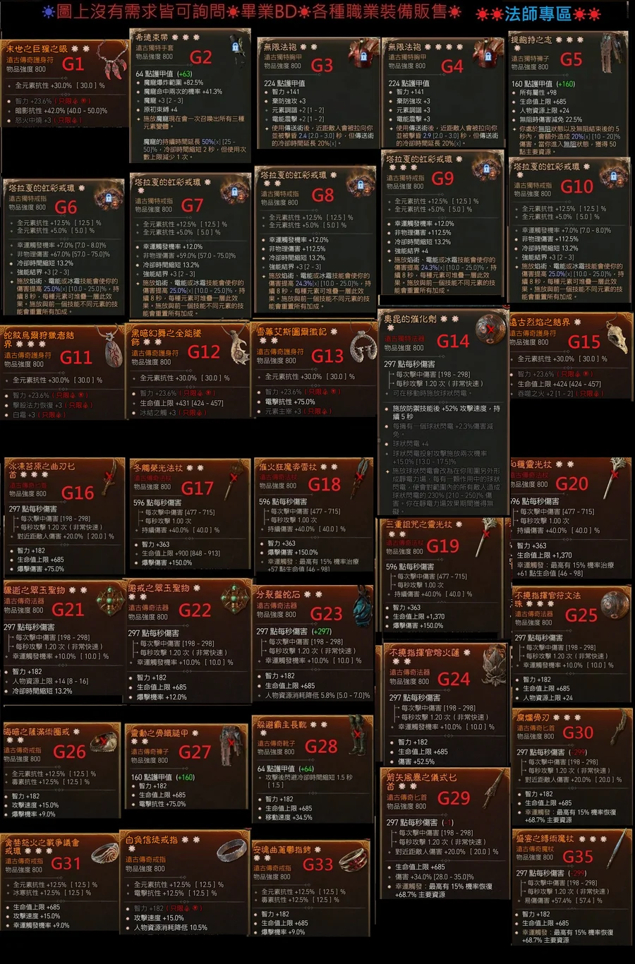 ▓ 職業 裝備等級 部位 暗金 太古詞 預算金額 一日內完成 ▓