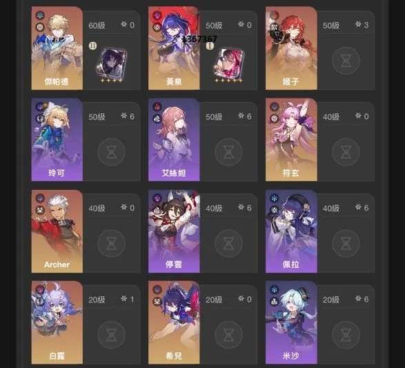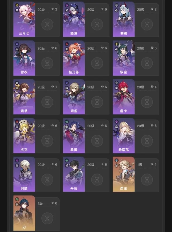 常駐角色:克拉拉(2+1)、布洛妮婭(3命)、姬子(3命)、傑帕德(0命)、白露(1命)、彥卿(1命)