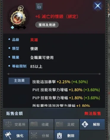飾品:二階藍全祝福,+6滅亡的懷錶
