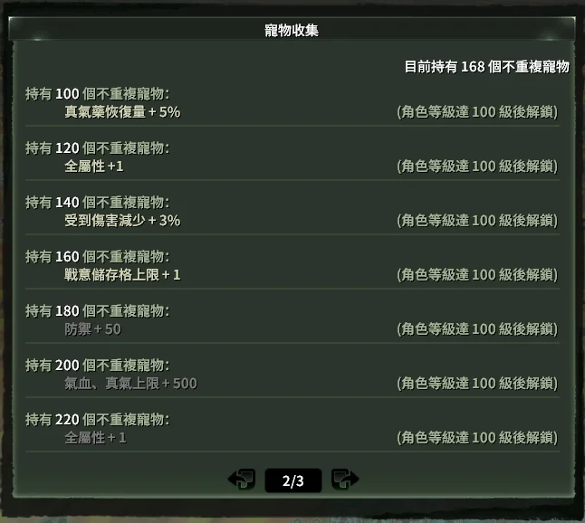 寵物收集:不重複168個