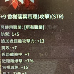 天堂目前最強的耳環 +9香榭耳環 (力量),搭配究極書傷害可大幅增加