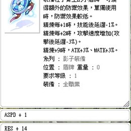 +10 重新裝改良神盾(ASPD+1/RES+14)