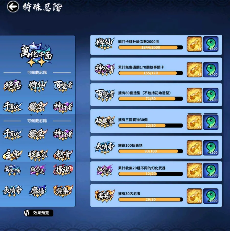 - 多款三勾寶物,忍宗3+3、鬼戒3、勇戒3、籠手3、赤晶3+0、墨髓3、寒冰3勾等