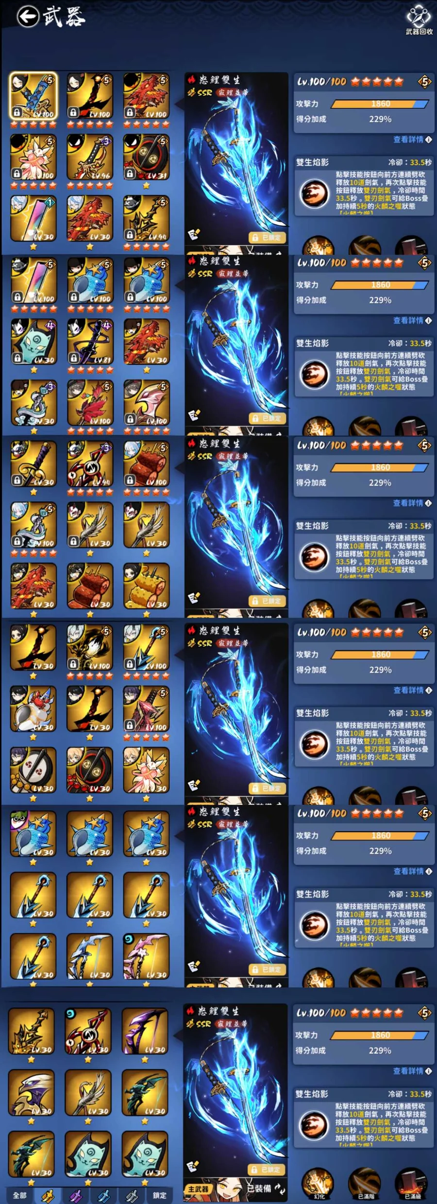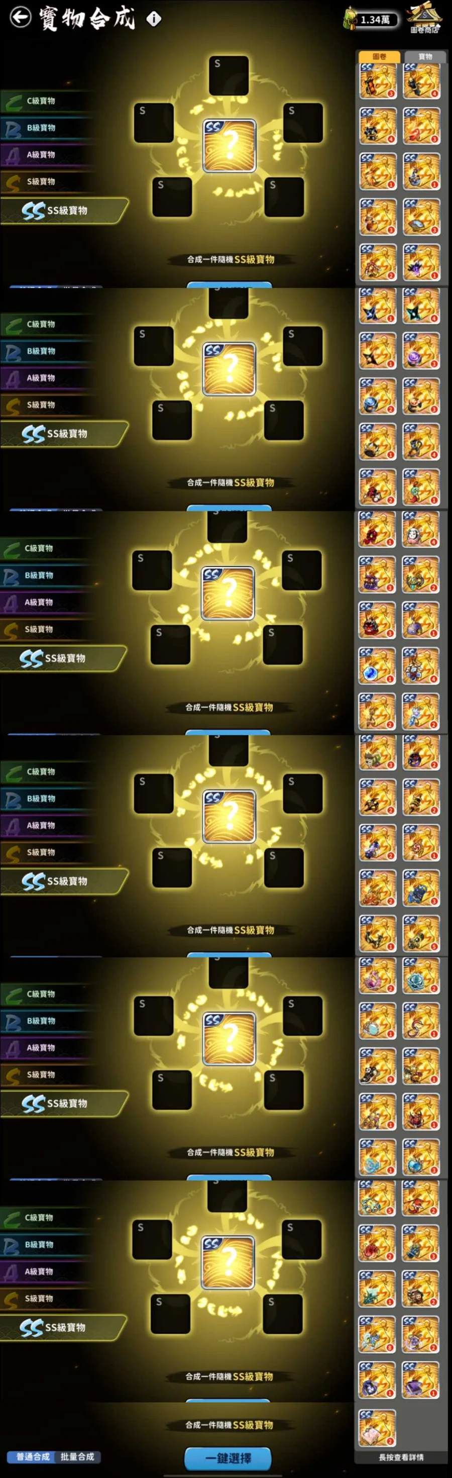 - 多款三勾寶物,忍宗3+3、鬼戒3、勇戒3、籠手3、赤晶3+0、墨髓3、寒冰3勾等