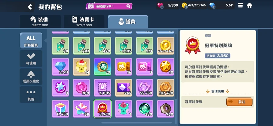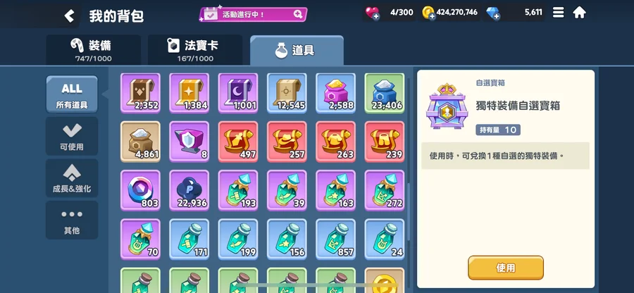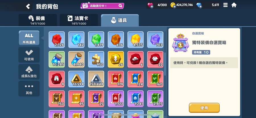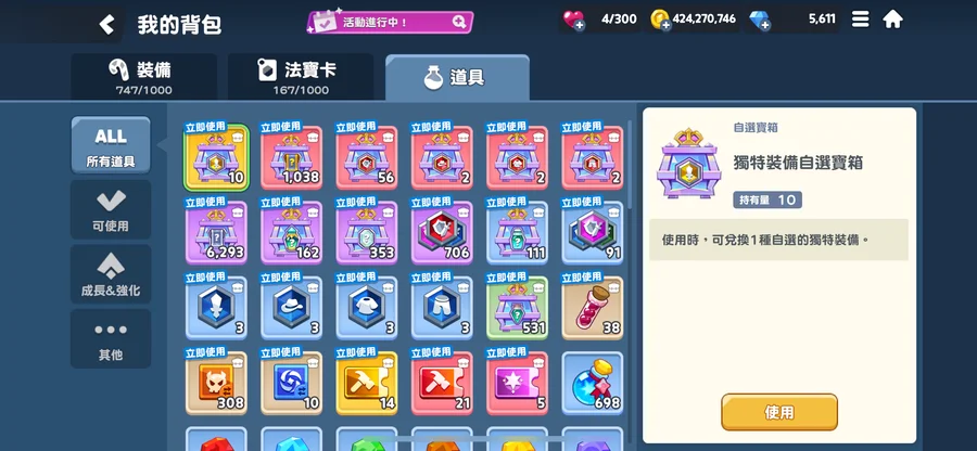 材料真的很多,裝備很多還未分解,可以自己慢慢挑選。