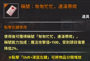 匆匆忙忙,連滾帶爬 魔法攻擊值+1500 受到頭目傷害降低2% | $ 851 |