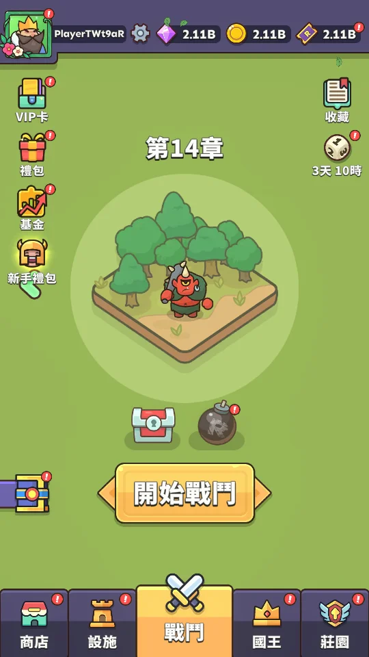 21億鑽 + 21億金幣 + 21億掃蕩卷 + 21億強化石 + 21億進化石 + 21億通用設施碎片 + 21億卷軸 (贈送活動骰子與兌換珍珠,沒有活動就不贈送) = 500