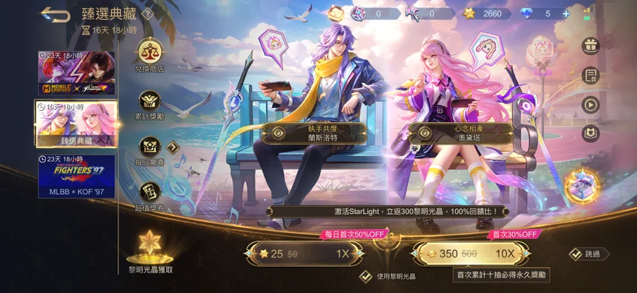 超多戰場播報、回城特效和擊殺特效 ,活動造型都有,有加入活動儲值小隊,可以拿到最新的covenant尤朵拉造型,星光碎片2872個,黎明光晶還有2660個,可以再拿一個Colletcor造型!