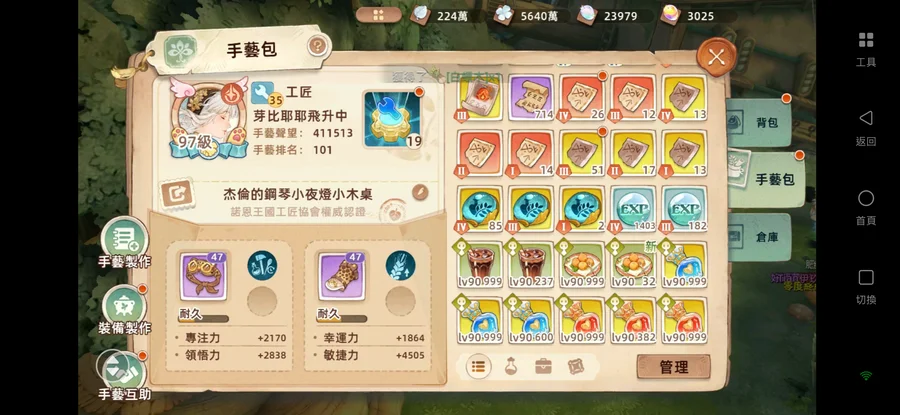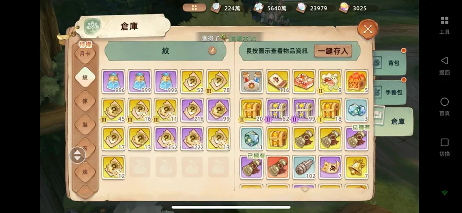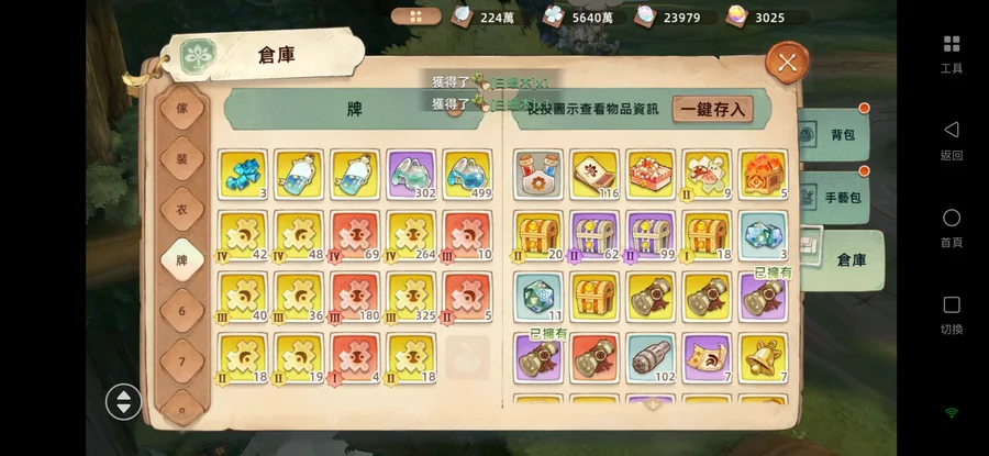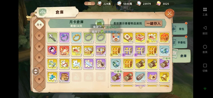 背包還有很多資源,裝備尚未認真用樹語