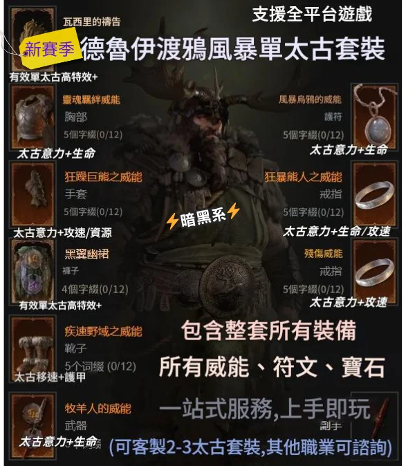 復仇荊棘BD|單太古9件套(贈威能/符文/寶石)(可客製升級) https://www.8591.com.tw/v3/mall/detail/2415051918