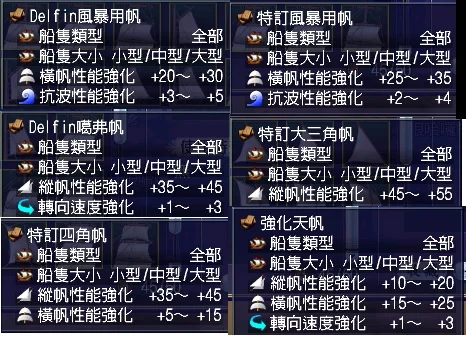 強化船材:D風暴帆(10)、D噶弗帆(8)、特訂風暴帆(12)