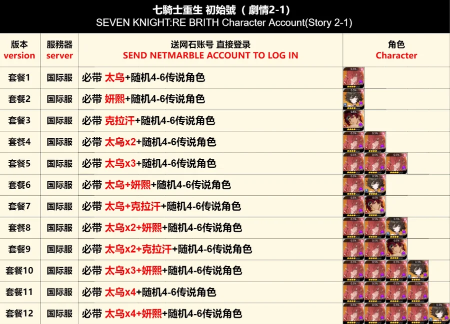 套餐12 | 必帶 太烏×4+妍熙+隨機4-6傳說角色 | 3300 |