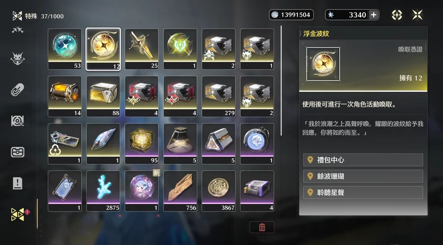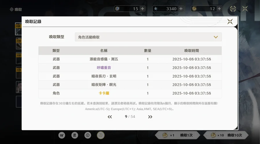 3325鑽+15月相+限定角色12抽+限定武器25抽 = 合計9260鑽
