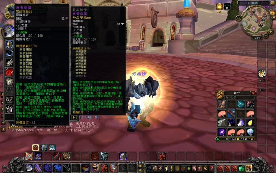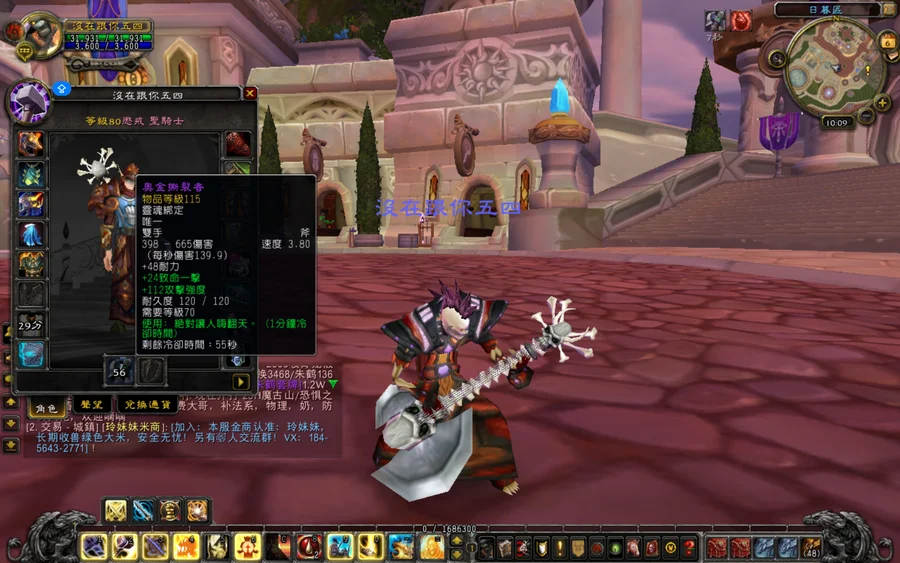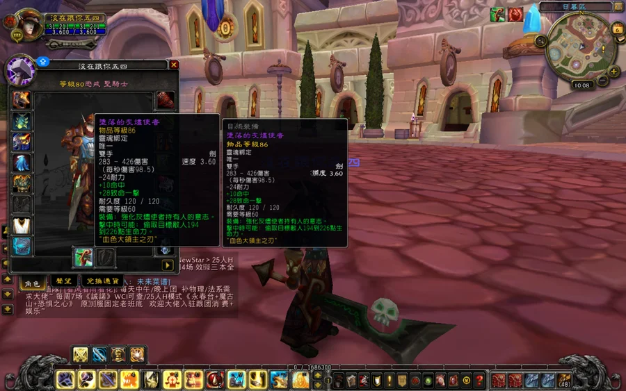帳號內總共8隻角色,戰士(裝等500), 聖騎士(裝等500)法師,法師,術士,死亡騎士,薩滿,獵人.皆為80等裡面主打血精靈聖騎士有絕版武器『墮落的灰燼使者』.(其他角色可幻化)以及戰士和法師全套T3.戰士以及聖騎士皆有巫妖王橘斧和光明外袍.內還有11萬金幣.有想問的問題或議價,