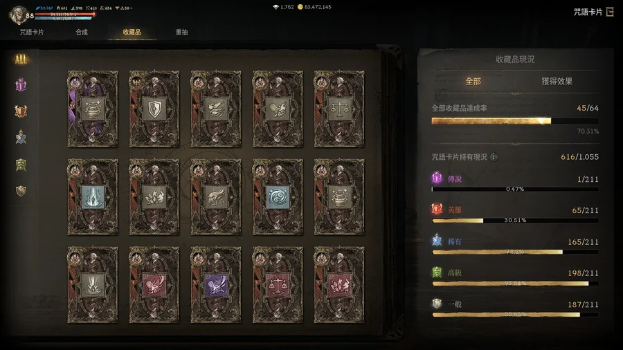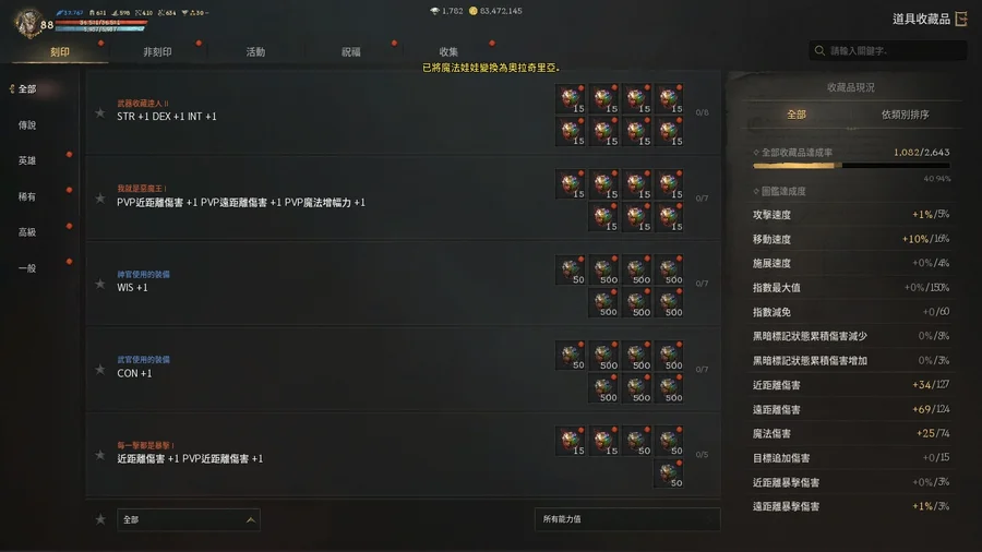 【總收藏】: 40.94% (遠傷+69、遠命+90、敏捷+22、物防+119、減傷+24)