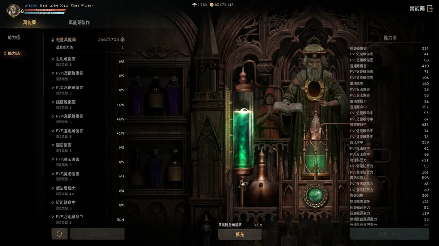 【萬能藥水】: 萬能藥30滿,輕量866/2705 (擴7/10)
