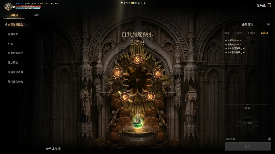 【提煉術】:加速5階、勇水5階、料理5階、魔力5階、龍珠5階、濃湯5階、戰鬥捲5階