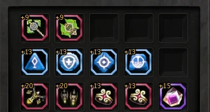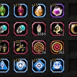 牧:十字 , 13一套十字符文, 飾品:項鍊耳環+20增幅古代/雙亞姐光攻戒指 , +9骨龍主副