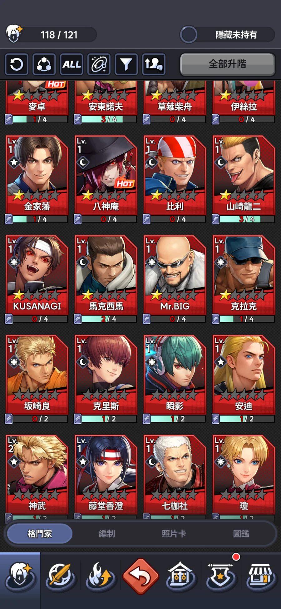 6星白草、5星泰瑞、4星神樂、4星不知火舞、2星雅典娜、覺醒八、覺醒雷歐娜,共有37隻紅角