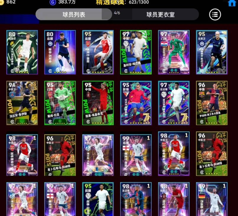 【SQVVN7757】前場:魯梅尼格,古利特,貝爾,梅西,蘇亞雷斯,內馬爾,阿扎爾,德羅巴,克魯伊夫,舍甫琴科,因扎吉,亞馬爾,姆巴佩,坎通納,范巴斯滕,赫內斯|中場:馬特烏斯,維埃拉,西多夫,貝林厄姆,卡卡,普拉蒂尼,菲戈,皮爾洛,內德維德,貝克漢姆,托蒂,席爾瓦|後場:內斯塔,卡納瓦羅,馬爾蒂尼,阿勞霍,薩內蒂|登錄方式:oppo|續約壓力小,雙卡 1000 天,誠心出,5088 金幣 詳情看圖【安卓】【自主截圖】