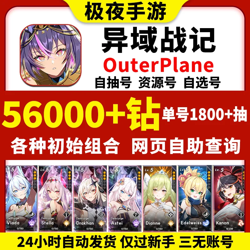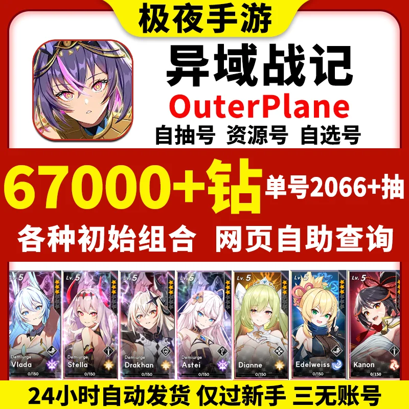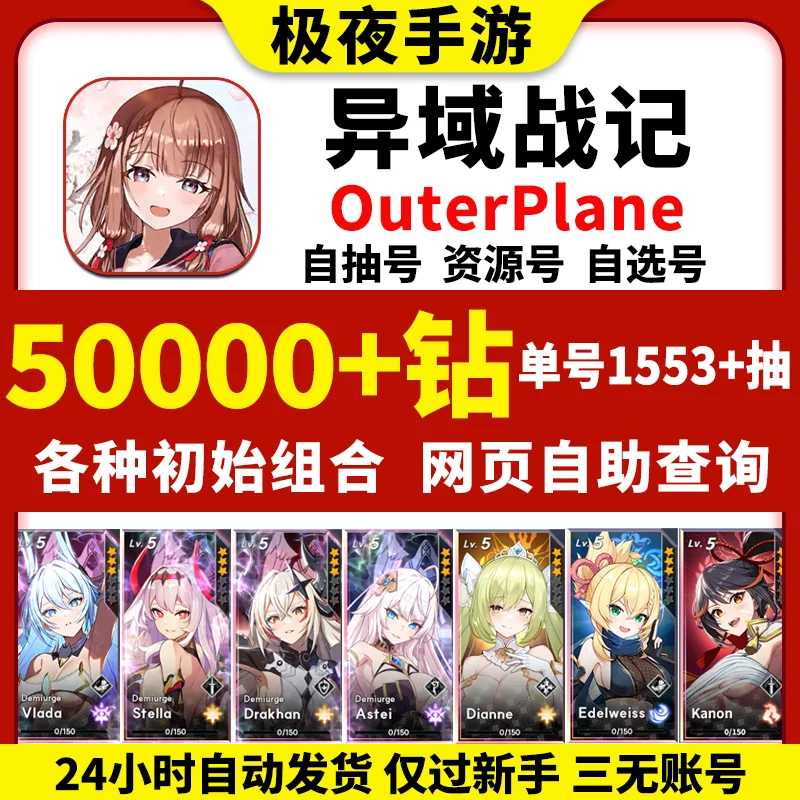 【初始號】異域戰記初始號OuterPlane國際服亞服韓服日服自選組合自抽石頭號