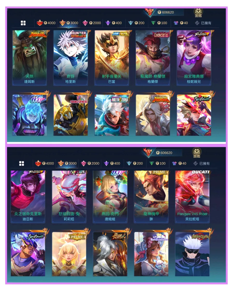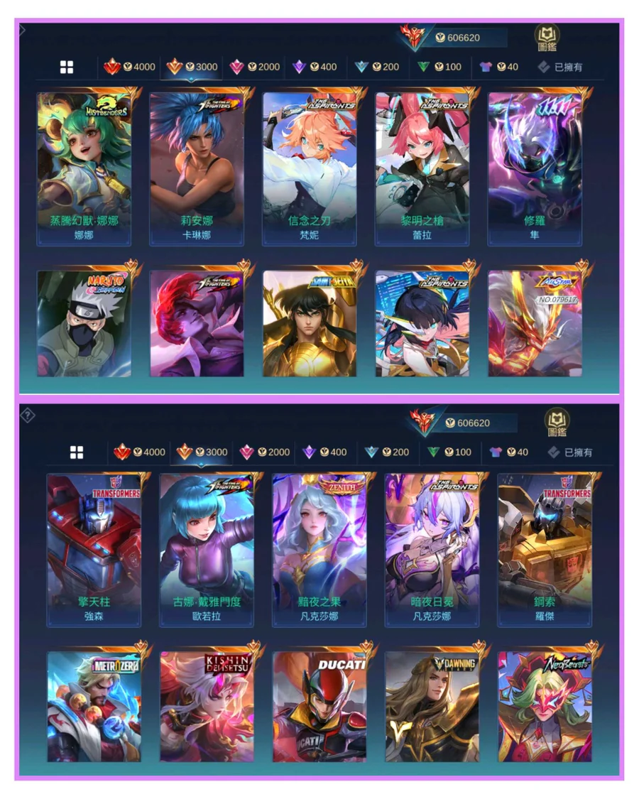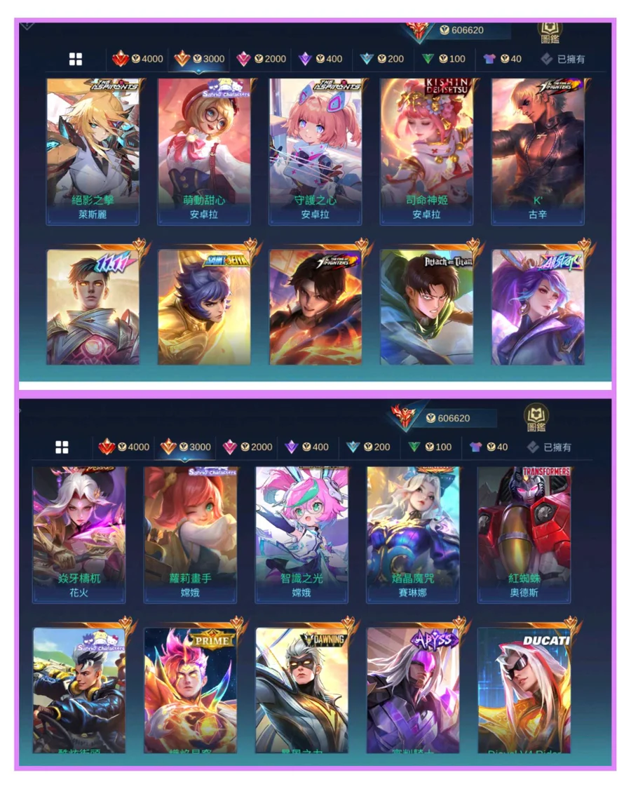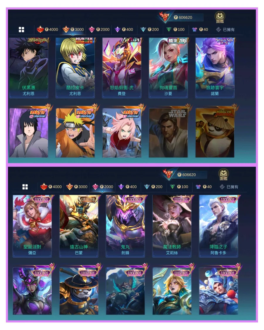 極高收藏 非常多套 限定联动 跟回城皮膚真正全 火影套.(包含聖像都有)戰隊表情 表情商店 能買的 都搞入手了~~