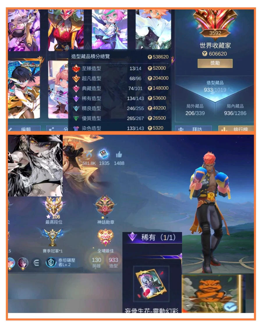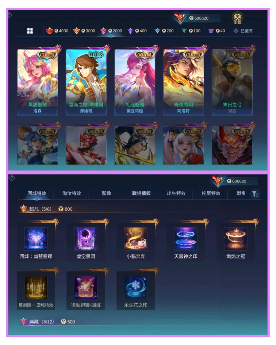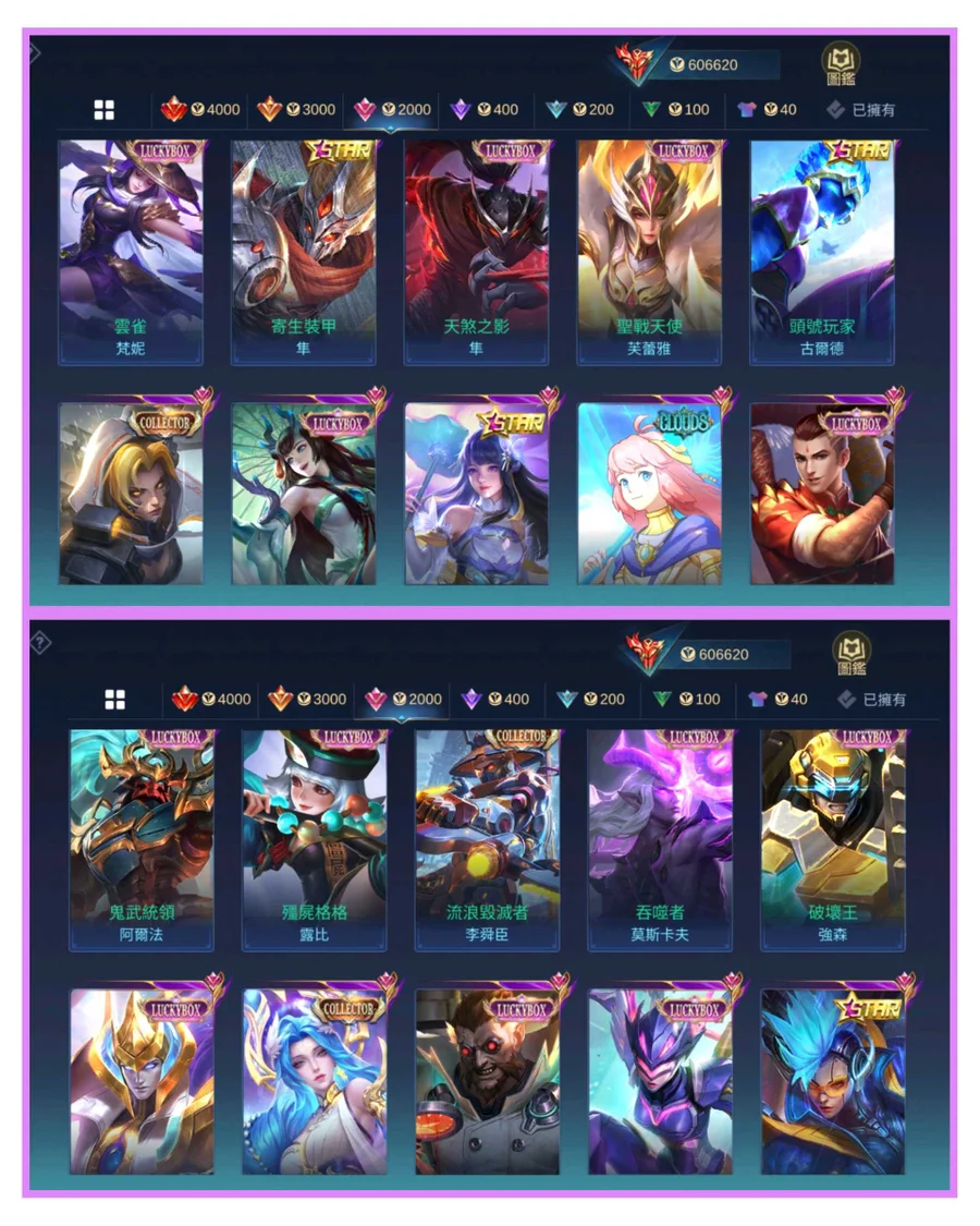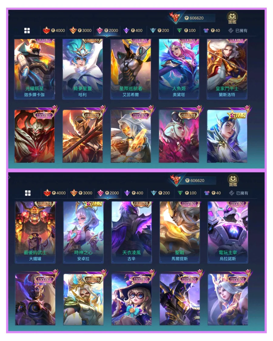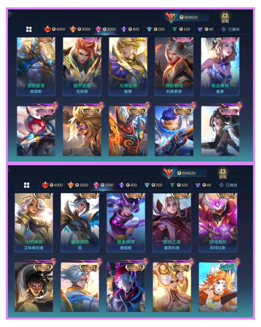 極高收藏 非常多套 限定联动 跟回城皮膚真正全 火影套.(包含聖像都有)戰隊表情 表情商店 能買的 都搞入手了~~
