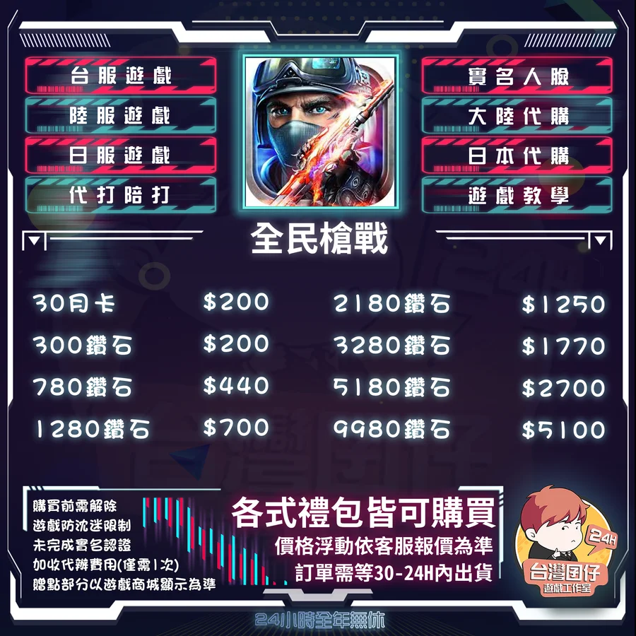 6️台灣囝仔台陸手遊代儲純粹為協助代儲服務,僅收取服務費,無賺取額外差價。