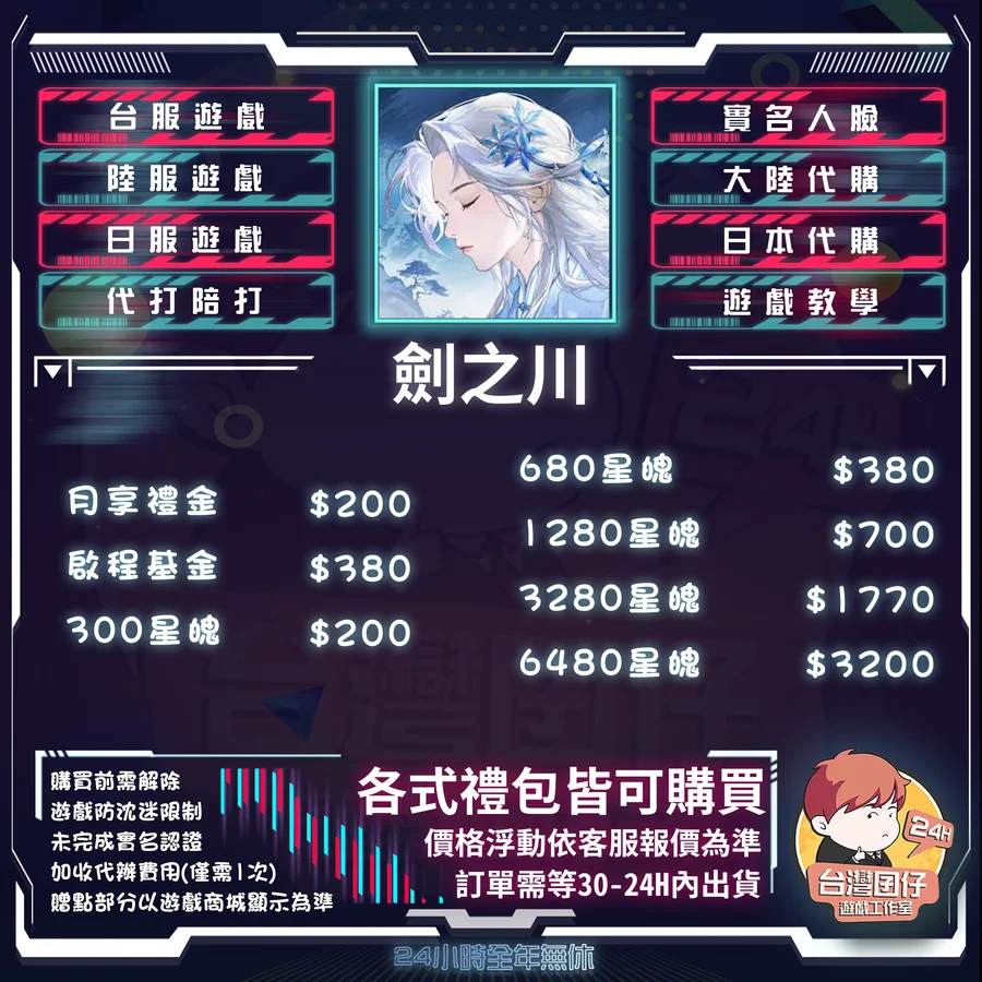 6️台灣囝仔台陸手遊代儲純粹為協助代儲服務,僅收取服務費,無賺取額外差價。