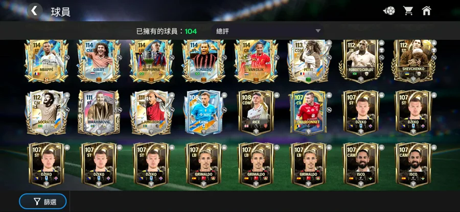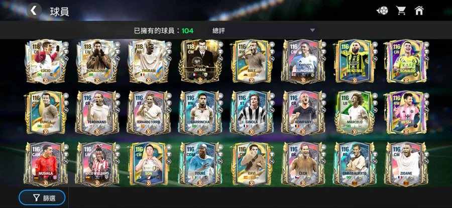 梅西 C羅 小羅 圖拉姆 齊丹 孫興愍 貝爾 盧西奧...全部練滿
