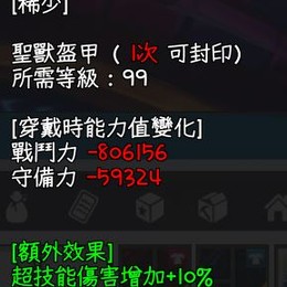 聖獸 飾品 盔甲 20% 超技能 傷害