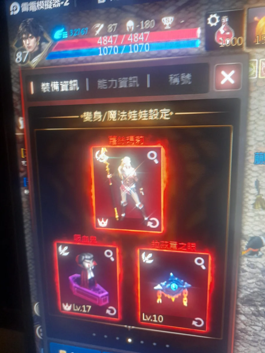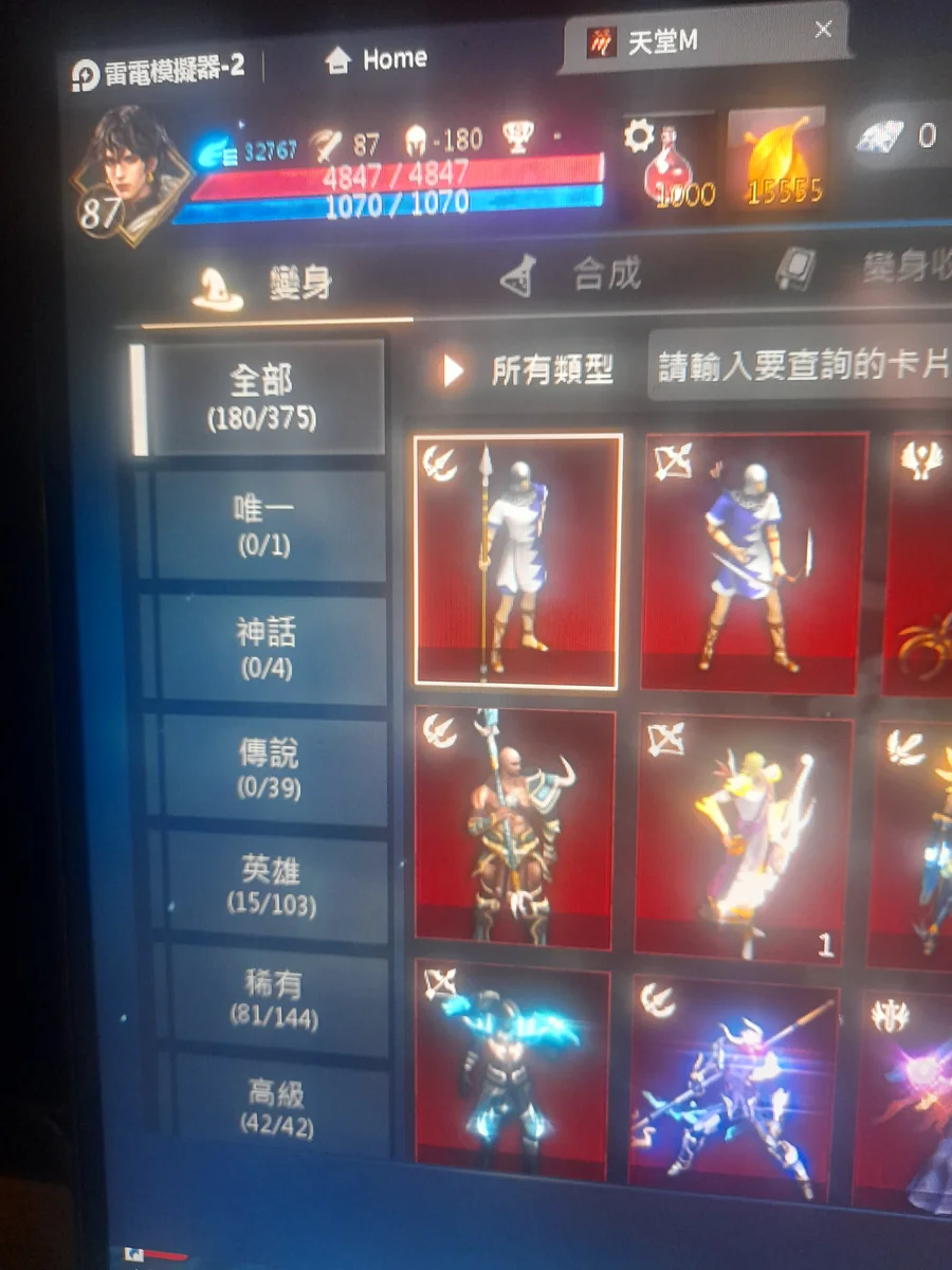 賣87魔劍士6紅技..分身84狂戰3紅技..2之皆附裝.+3以上飾品..紅變.紅娃.紅聖物