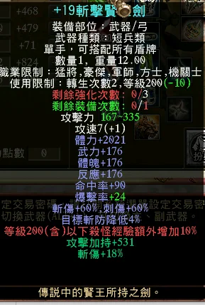 214軍 基本武 +15 200套 4真天重劍