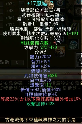 221軍 +17風靈扇 +15 210套 4真天槍